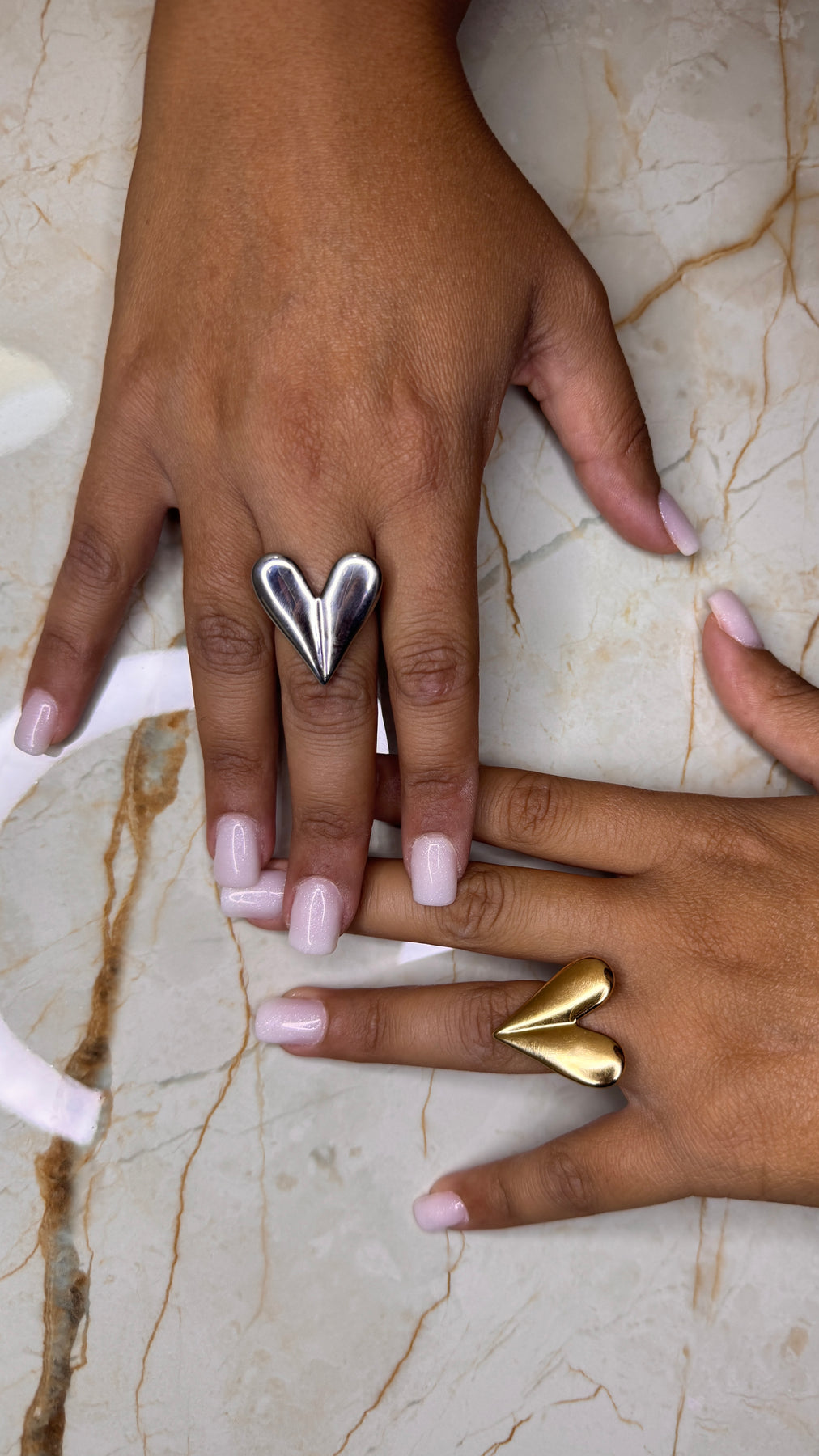 Anello delicato a forma di cuore, realizzato in acciaio inox dorato. Design semplice e raffinato, perfetto per chi ama uno stile romantico ma moderno. Resistente, ipoallergenico e ideale da indossare tutti i giorni o da regalare per un’occasione speciale.